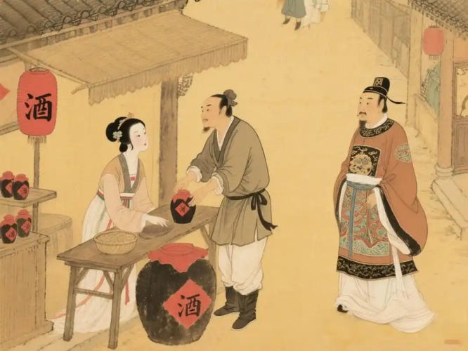 沽酒相邻,况得愁谋醉,无愧驱贫。天空斗星千点,朗月冰轮。玉盏茶翻层浪,歇山矶、留齿生津。仙风阆苑素,木棹侵澄,修赋裁新。