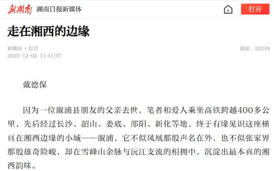 给我印象最深刻的还是曾被授予“湖南省德艺双馨文艺家”的王跃文作家,他出生于溆浦县的漫水村,主要作品包括:长篇小说《国画》《梅次故事》《朝夕之间》《爱历元年》《西州月》《大清相国》《亡魂鸟》《苍黄》;中篇小说《漫水》《无雪之冬》;以及散文随笔集《幽默的代价》;访谈录作品《王跃文文学回忆录》《无违》等。我赞许其才情的丰盈,更钦佩其对溆浦的情怀,他坦言:“溆浦就是我的家山,我深深地爱着我的家山”“他乡纵有当头月,不抵家山一盏灯”。故乡的山水、方言、习俗与人事,构成其文学创作的精神源泉与情感锚点。他视溆浦为屈原流寓之地,“我笔下的一草一木,都是屈原书写过的”,自觉接续《涉江》《山鬼》等楚辞传统,赋予作品浪漫与厚重。他多次在家乡举办分享会,带动读者关注溆浦的历史与文化,被视为溆浦的文化名片。他说:“我要对我的家乡深深地感恩”,以写作反哺故土,让更多人看见并理解这片土地的厚重与温情。他的溆浦情怀,是从个人记忆到文学建构,再到文化传承的完整表达。他用文字为故乡立传,让漫水与溆浦成为中国乡土文学中一个温暖而坚实的坐标,也让“家山”成为连接个人、故乡与民族文化的精神纽带。