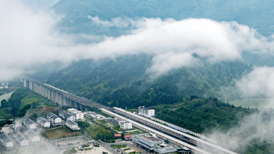 高铁行至雪峰山深处,一道“天梯”突然划破天际——溆浦南站到了,也许我平生第一次见到山顶上的高铁站,也可能是在丘陵地带呆久了,真有些少见了,一出站台满眼惊诧,山风裹挟着松针的清香扑面而来,远处峰峦叠嶂,云雾如轻纱漫舞,脚下的铁轨向远方云端延伸……我心里恍惚,这高铁是从天上来,还是到天边去呢?踏上站台,我好久才回过神来,很难想象,曾经需要翻山越岭数日的路程,如今只需不到2个小时便穿越崇山峻岭而至。环视站房,依山而建,青灰色的屋顶与黛色山峦融为一体,玻璃幕墙倒映着流云飞鸟,仿佛从山体中自然生长而出。离开车站时,回望这座山顶车站,它像一位沉默的守望者,守着湘西的边缘,也守着山里人走向世界的梦想。后来从朋友口中得知这座建在山顶的高铁站,堪称湘西大地上的工程奇迹,一头连着繁华都市,一头系着湘西秘境。