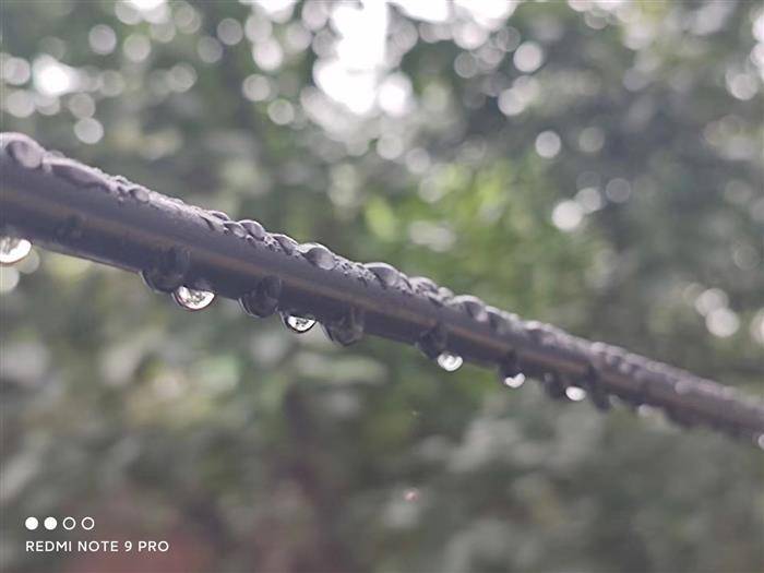 怜惜村家少装饰,穿绳挽雨作珍珠。
