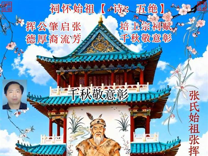 2025年12月,设计培上古典建筑,配古人物画像,更有古韵味,而作此诗,并制作此视频。 祠怀始祖【诗:五绝】 新韵(十唐)平首(平起首句押韵) 文/幸福永远 原创 2025/12/20 挥公肇启张, 德厚裔流芳。 培上宗祠赋, 千秋敬意彰。