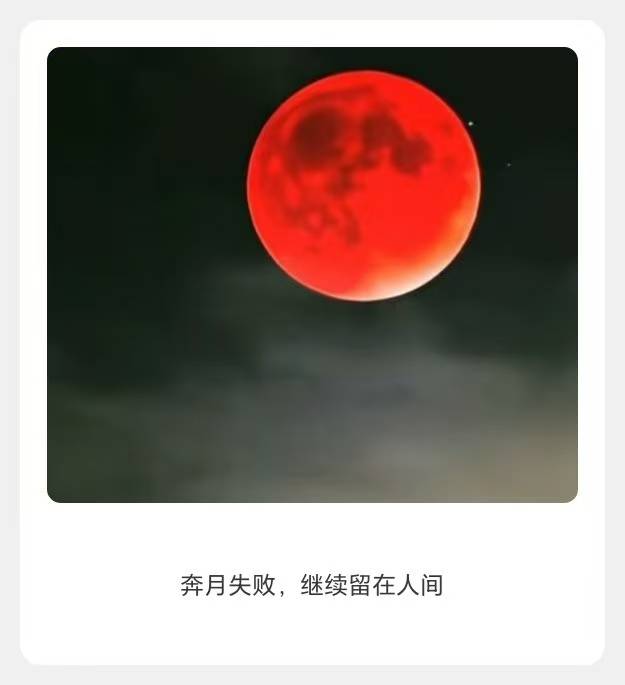 上阕落笔即绘景,“密云铺,枯叶卷”寥寥六字,勾勒出萧瑟开阔的背景,随后“红色扬波”将红月亮的奇景具象化,再融入“嫦娥”“吴刚”“桂香”等经典神话元素,让画面既有自然之壮阔,又含神话之浪漫,“灌醉繁星,捧起朱华满”一句更是灵动鲜活,将星空月色写得富有生机与诗意。