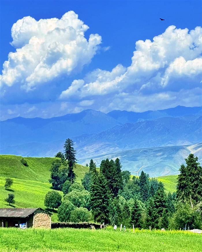 绿地苍天形似画,碧流水草靓如仙。