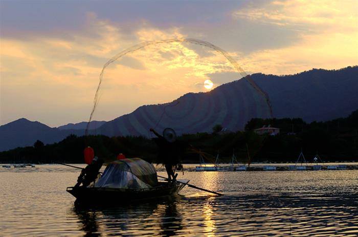 锦瑟云天卧绿央,一蓑一笠捕残阳。