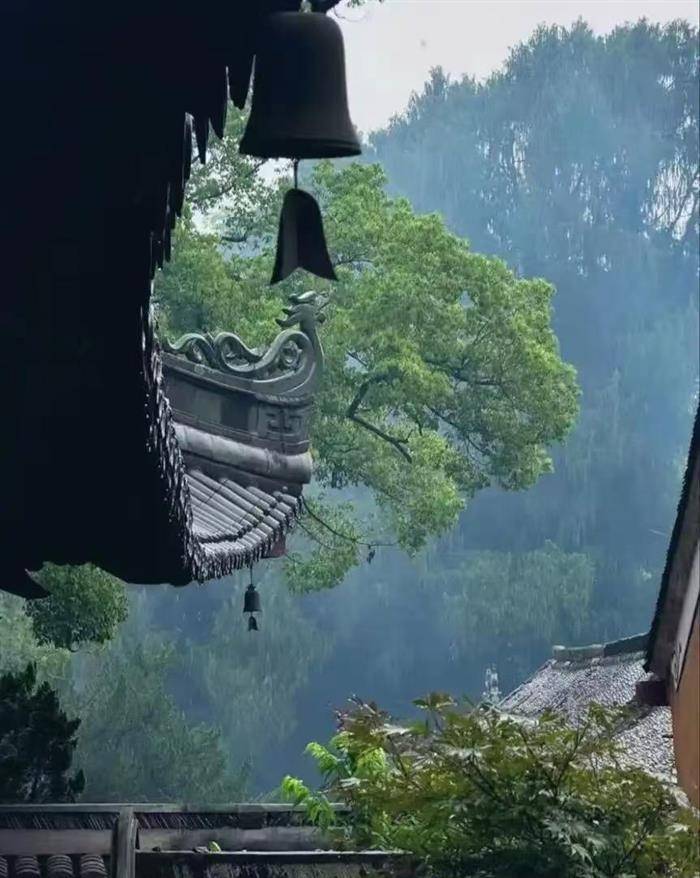 南望鸣钟处,楼台深翠微。