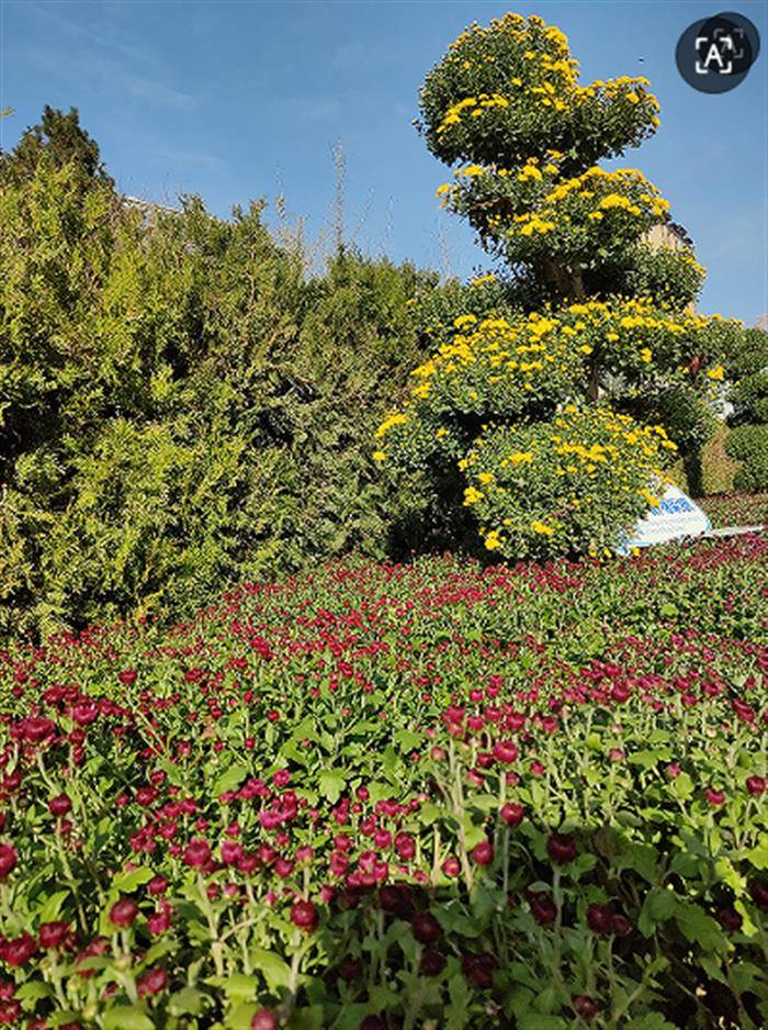 菊海芸芸叹匠心,红黄粉紫绿沾襟。