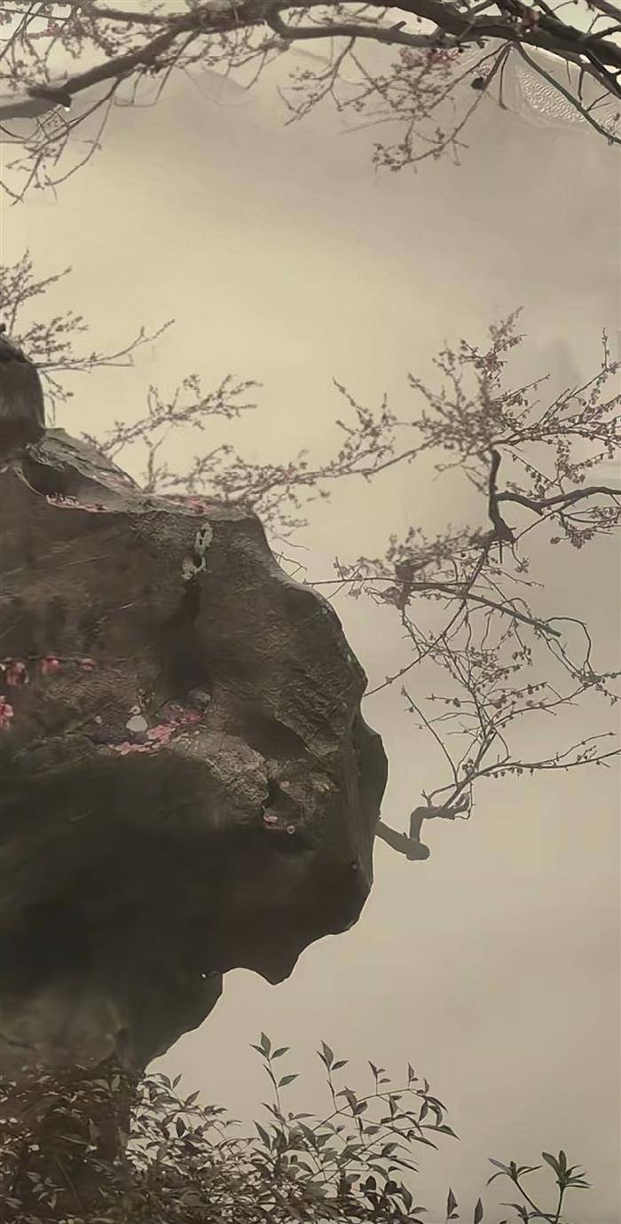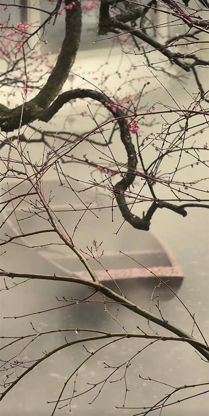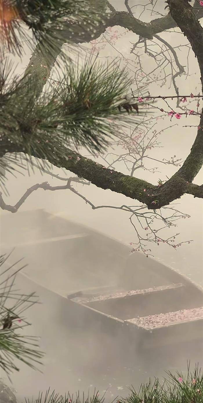二是景与情的关系逆转。通常写景生情,是“睹物兴情”——诗人先有情绪,景物只是触媒。但“卵”字暗示的是:诗人本无愁,甚至是被美景所吸引,但看着看着,那罗幔般的雾、那青瘦的梅、那几点嫣红,竟像孵蛋一样,生生地把愁绪从他心里孵了出来。景成了主动者,诗人反成了承受者。