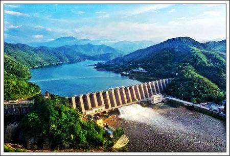 千溪赴壑汇泓浵,一坝横天锁怒龙。