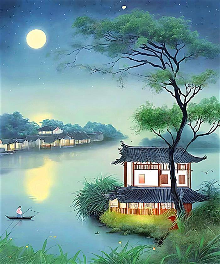 健身幽径学操舞,诗蕴花前带月分。