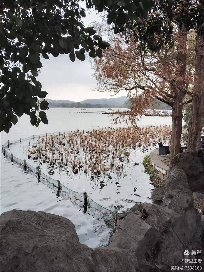 风轻浪平枯荷景,佛光神韵妙圆情。