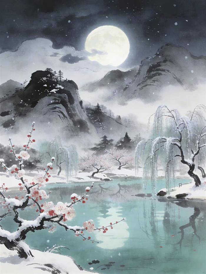 白雪红梅同赏月,天南地北共舒情。