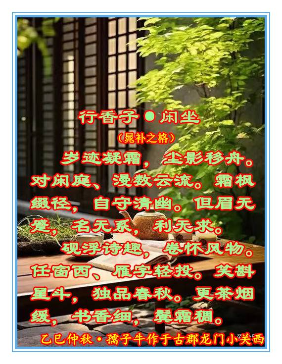 砚浮诗趣,卷怀风物。任窗西、雁字轻投。笑斟星斗,独品春秋。更茶烟缓,书香细,鬓霜稠。
