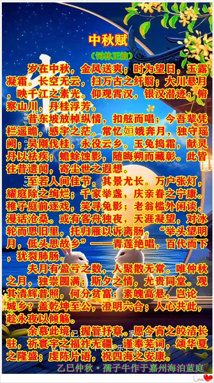 余慕此境,握管抒章。愿今宵之皎洁长驻,祈寰宇之福祚无疆。谨奉芜词,颂华夏之隆盛;虔陈片语,祝四海之安康。