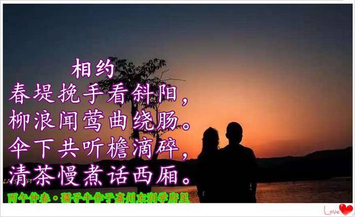 春堤挽手看斜阳,