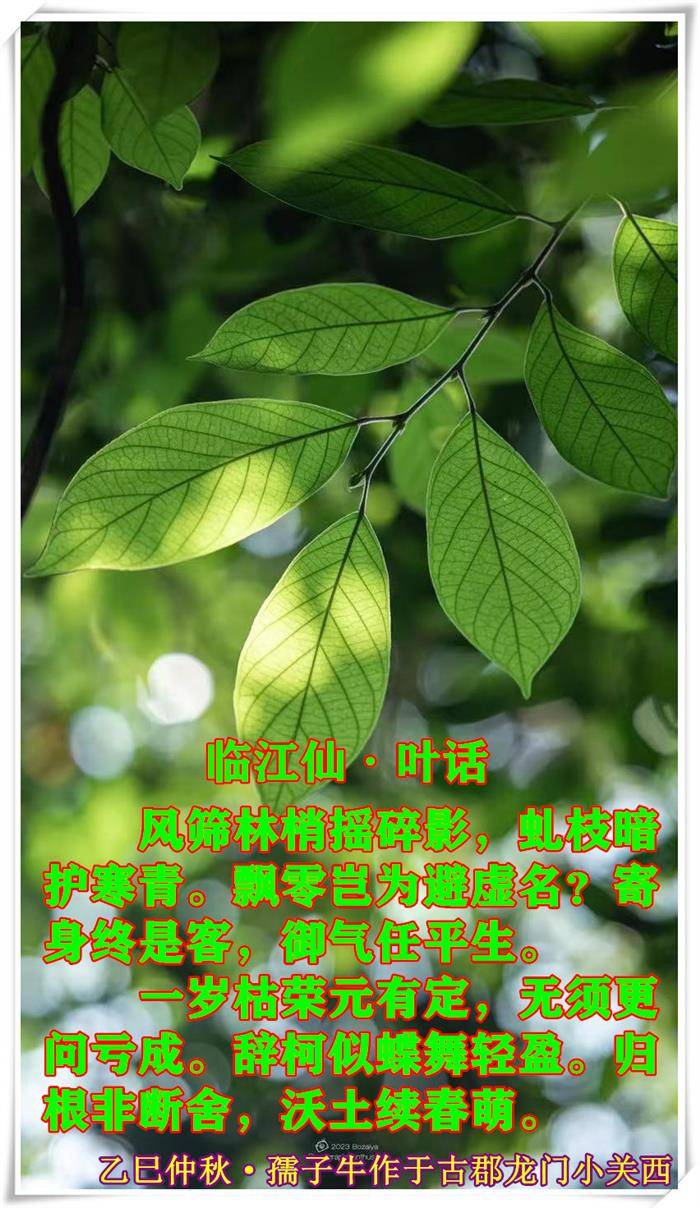 一岁枯荣元有定,无须更问亏成。辞柯似蝶舞轻盈。归根非断舍,沃土续春萌。