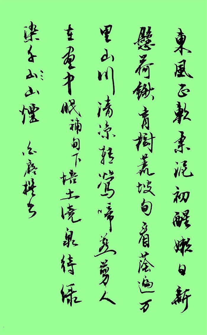 东风正软,柔泥初醒,嫩日新悬。荷锹育树荒坡甸,培土浇泉。待绿染千山翠烟,看阴遮万里山川。清溪转,莺啼燕剪,人在画中眠。