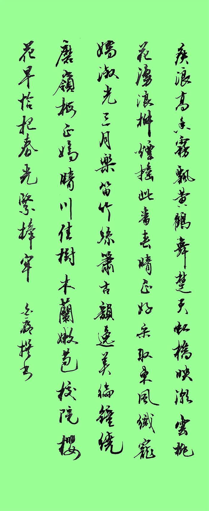 疾浪高,香雾飘。黃鶴舞楚天,虹桥映潮。云桃花涌。浪柳烟摇,此番春晴正好,采取东風织宠骄。(换头)陌阡三月乐,笛竹丝箫,古韵逸美编钟绕。磨岭梅正娇,晴川佳树,木兰嫩苞。校院櫻花早,恰把春光紧捧牢。