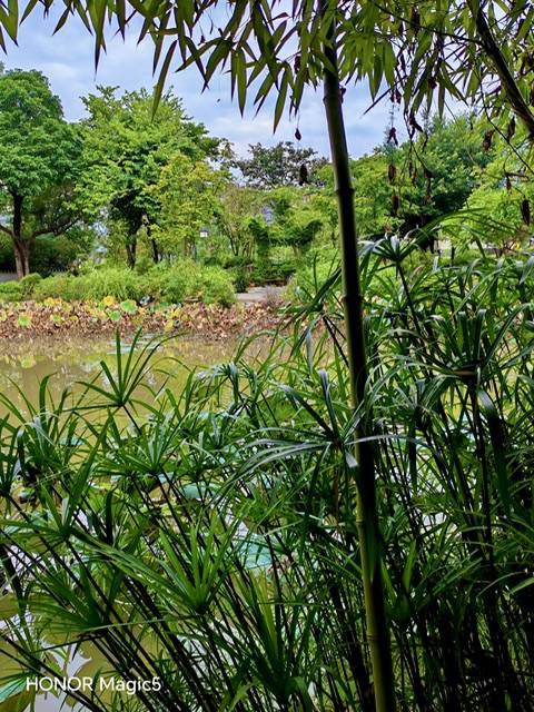 荷枯无果熟,岸窄有新竹。