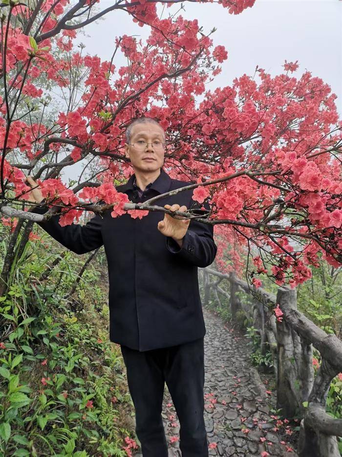 万寿寺,杜鹃花。游客潇湘拜佛爷。七祖袈裟弥勒念,紫阳明月彩云霞。