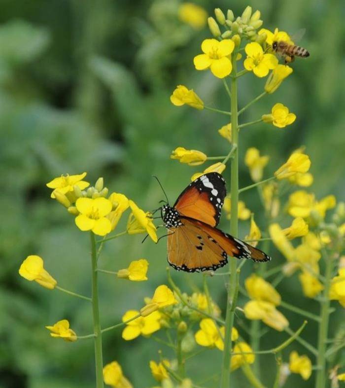 油菜花开好时光。蜜蜂忙。勤劳双。