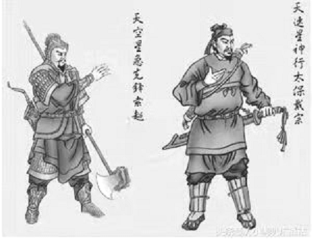 索超:河北人氏,本来是北京大名府留守司正牌军。梁山一百零八将之一,排名第十九,为马军八骠骑兼先锋使之一,惯使一把金蘸斧。因他性急,上阵时当先厮杀,人称"急先锋"。梁山攻打大名府时,索超被擒后归顺梁山。随宋江征讨方腊时在杭州死于方腊帐下大将石宝之手。(简介摘录百度百科)2019、9、19