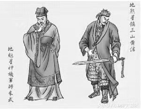 37、地魁星神机军师朱武红光满面鼓髯留,阵法精通学道周。攻打辽兵除劲敌,计收昱岭破关丘。豪情四海雄心在,勇冠三军谋略筹。北宋魁星名震远,神机妙算将才优。 朱武:定远人氏,能使两口双刀,精通阵法,很有谋略,投奔梁山。封为参赞军务头领。受招安后,随宋江征讨方腊,为有生还的十五员偏将之一。被封为武奕郎兼诸路都统领。(简介摘录百度百科)2019、12、17