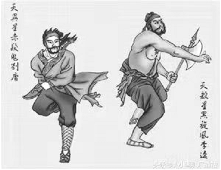22、天杀星黑旋风李逵心粗勇猛力无穷,率直铁牛骁桀雄。本想接娘山寨内,哪知送母虎窝中。砍旗只为匡正义,撕旨唯能泄隐衷。大闹京城争帝位,一杯毒酒饮而终。李逵:绰号“黑旋风”。沂州沂水县(今属山东省临沂市沂水县)百丈村人氏。为救宋江和戴宗大劫法场。欲背着老母上梁山享福,但因老母在沂岭被虎所害,李逵怒杀一窝四虎。善使一双板斧,他也是一百零八将之一,梁山排座次时,位列第二十二位,是梁山第五位步军头领。 梁山受招安后,随军征讨辽国、田虎、王庆、方腊;战事结束后被封为镇江润州都统制。因宋江饮高俅等奸臣送来的毒酒中毒后,担心李逵再次起兵造反复仇,便让李逵也饮下毒酒,李逵随后身亡。(简介摘录百度百科)2019、10、6