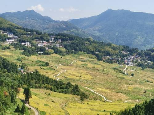 连云竹海山坡溢,山下稻香千片。