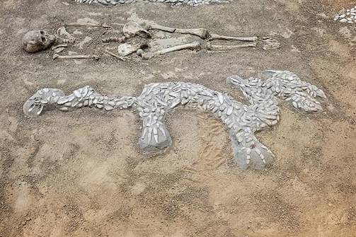 况夫华夏儿女,称龙裔传人,非虚言而其源有实,此龙便是文明之根。烛火不熄 ,九万里众志守道;星芒不散,千万年一脉传薪。 观此墓制,上圆象天,下方法地,暗合“天圆地方”之循。墓南另现蚌塑契符。龙虎鹿麟并陈。此乃“三蹻”文化之体现,龙虎鹿为通天坐骑,是帮助升天之神兽,能助墓主魂行八垠。盖闻颛顼乘龙游乎四海、伏羲驭雷泽人首兮蛇身,华夏祖灵皆人神,黄帝乘龙升太清。龙非虚诞,乃观象授时之智慧;德非空谈,乃敬畏自然之初衷。更非臆想之幻影,皆可于此而觅踪。碧波虽隐一墓,今朝终见乎天日,封土沉埋千载,龙魂已腾昊空。此龙非只文物,实乃精神图腾,见其形则思先祖,观其象则知华风也。