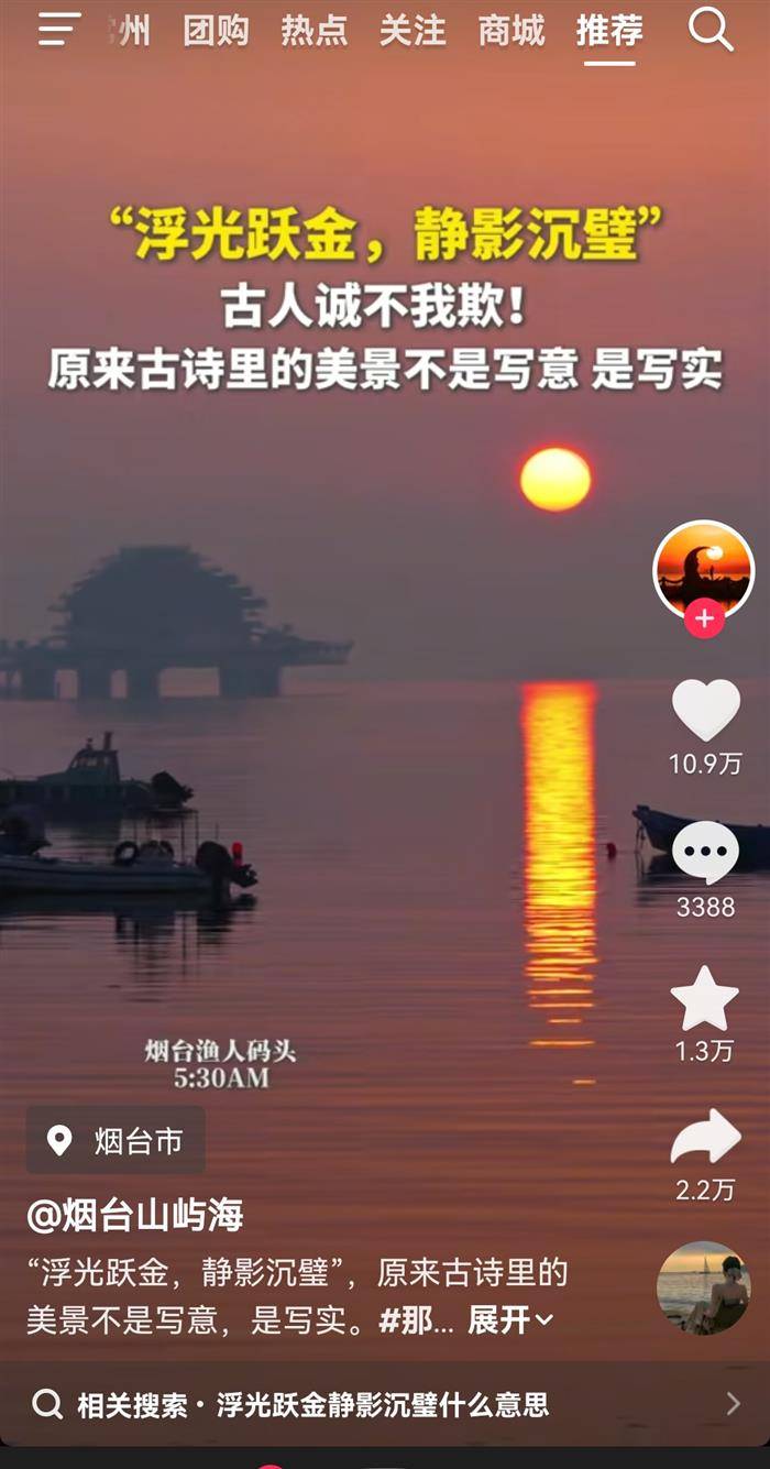 《临江仙·晨曦》创作源于抖音视频作者烟台渔人码头清晨的独特体验。面对波光与古塔交织的画面,试图突破传统山水词的写景范式——以"熔金"替代泛化的"浮光",既保留原典神韵又赋予冶金般的质感;将静止的"危崖"动态化为"枕浪听潮",在动静对照中凸显时空张力。千载风涛与当代渔歌的并置,暗含文明传承的隐喻;末句"潮声淘日月"将物理时间转化为文化时间,使瞬间即逝的晨曦成为文明演进的见证。创作中刻意强化画面纵深感,从近景渔船到远景古塔,最终延伸至"蓬瀛""唐尧"的精神维度,试图在古典词体中构建现代性山水美学。