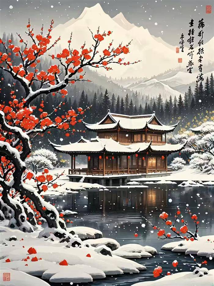 题图:七绝 ·雪山梅阁
