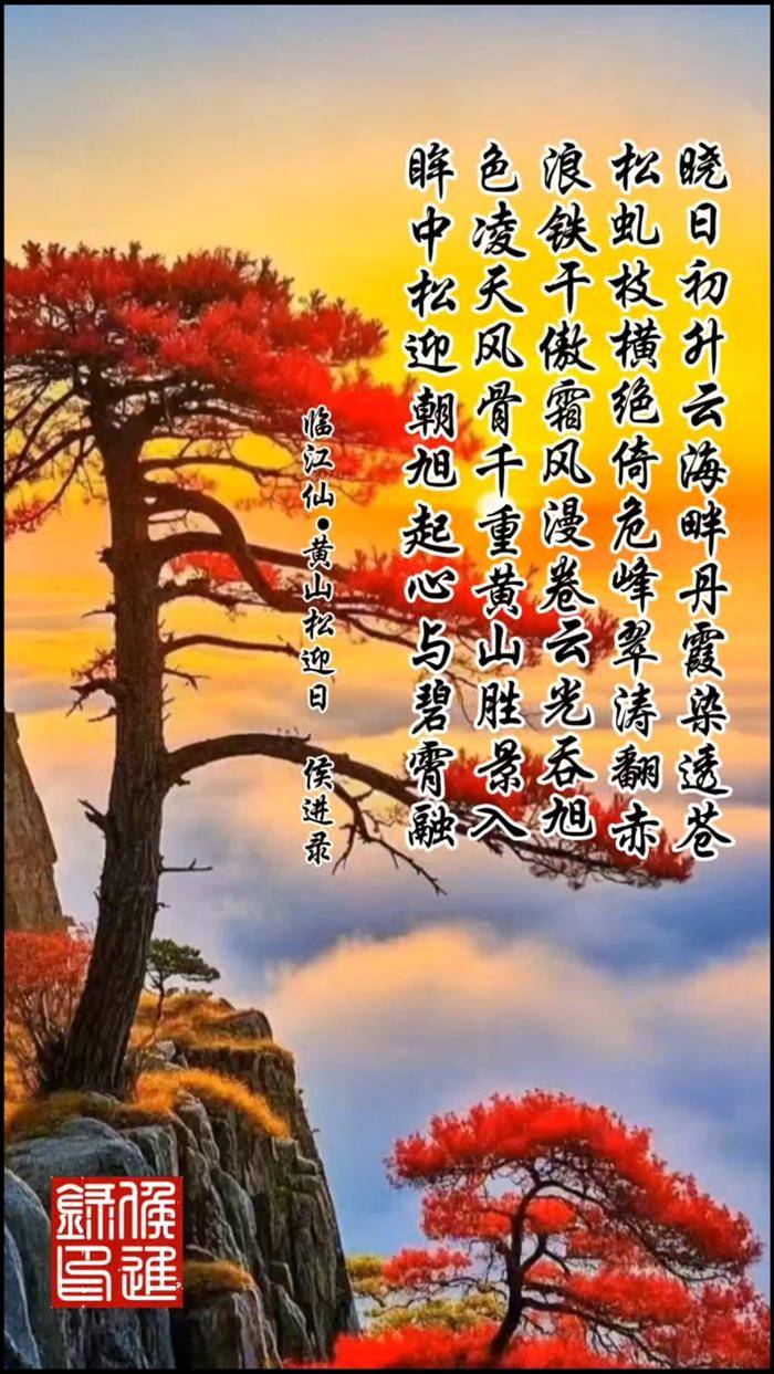 漫卷云光吞旭色,凌天风骨千重。黄山胜景入眸中,松迎朝旭起,心与碧霄融。