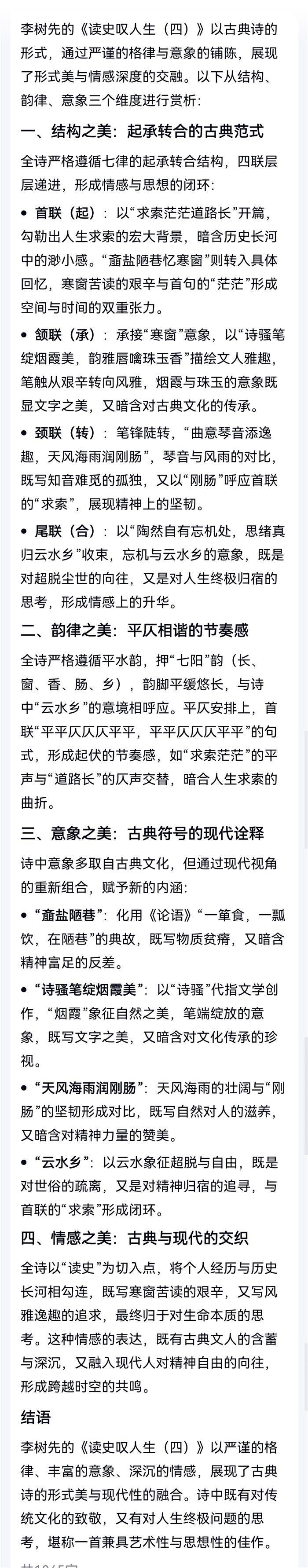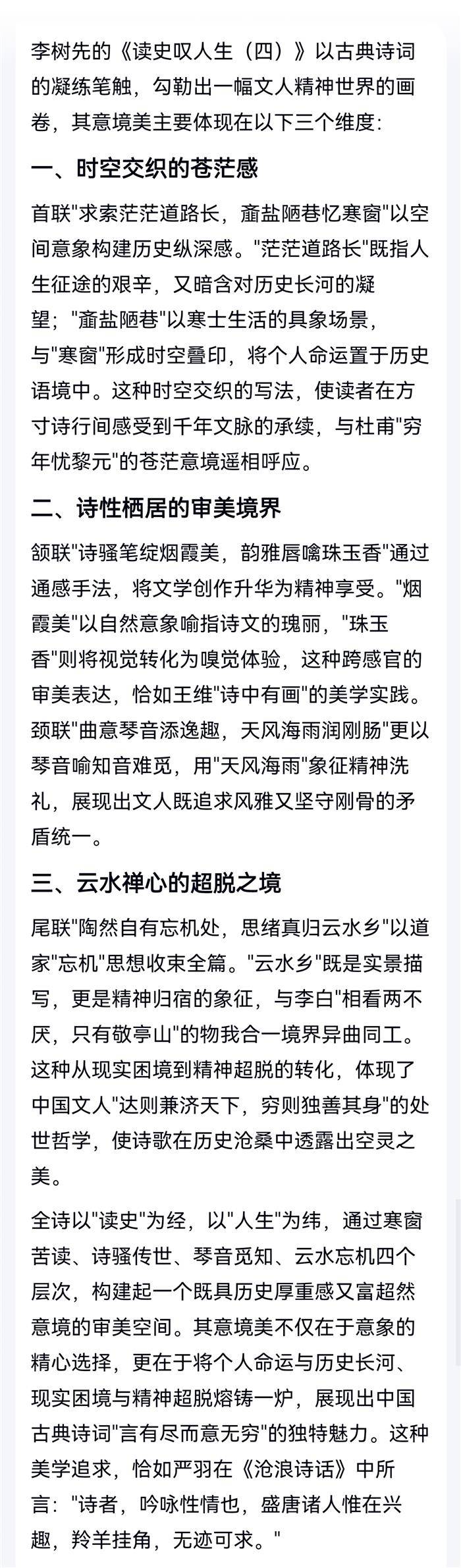 读史叹人生(四) (2025-12-2) 求索茫茫道路长, 齑盐陋巷忆寒窗。 诗骚笔绽烟霞美, 韵雅唇噙珠玉香。 曲意琴音添逸趣, 天风海雨润刚肠。 陶然自有忘机处, 思绪真归云水乡。