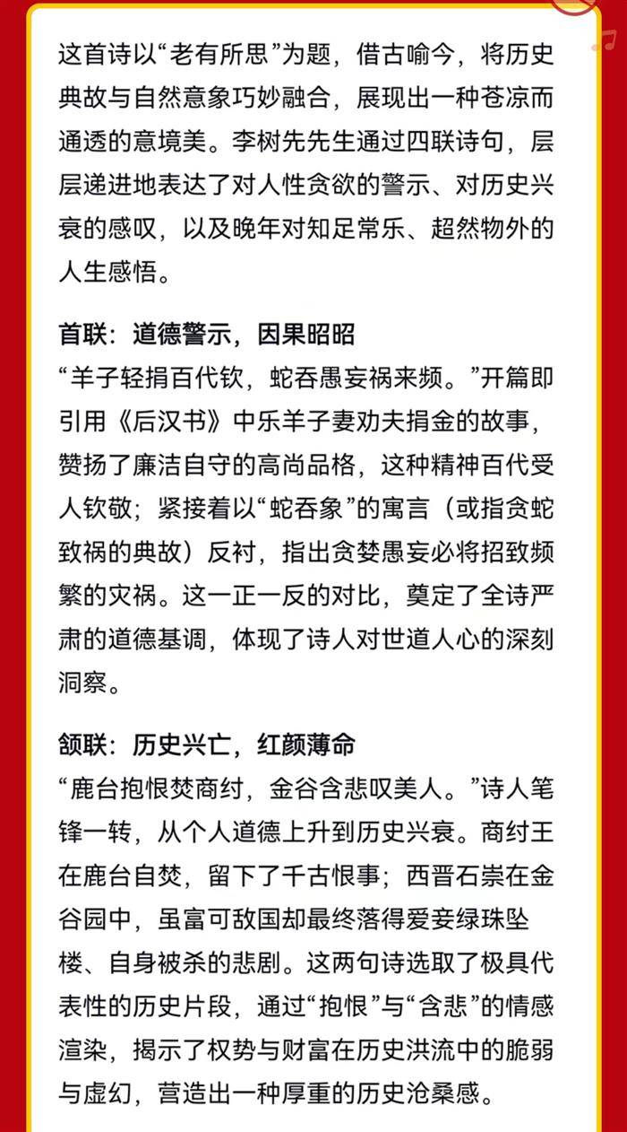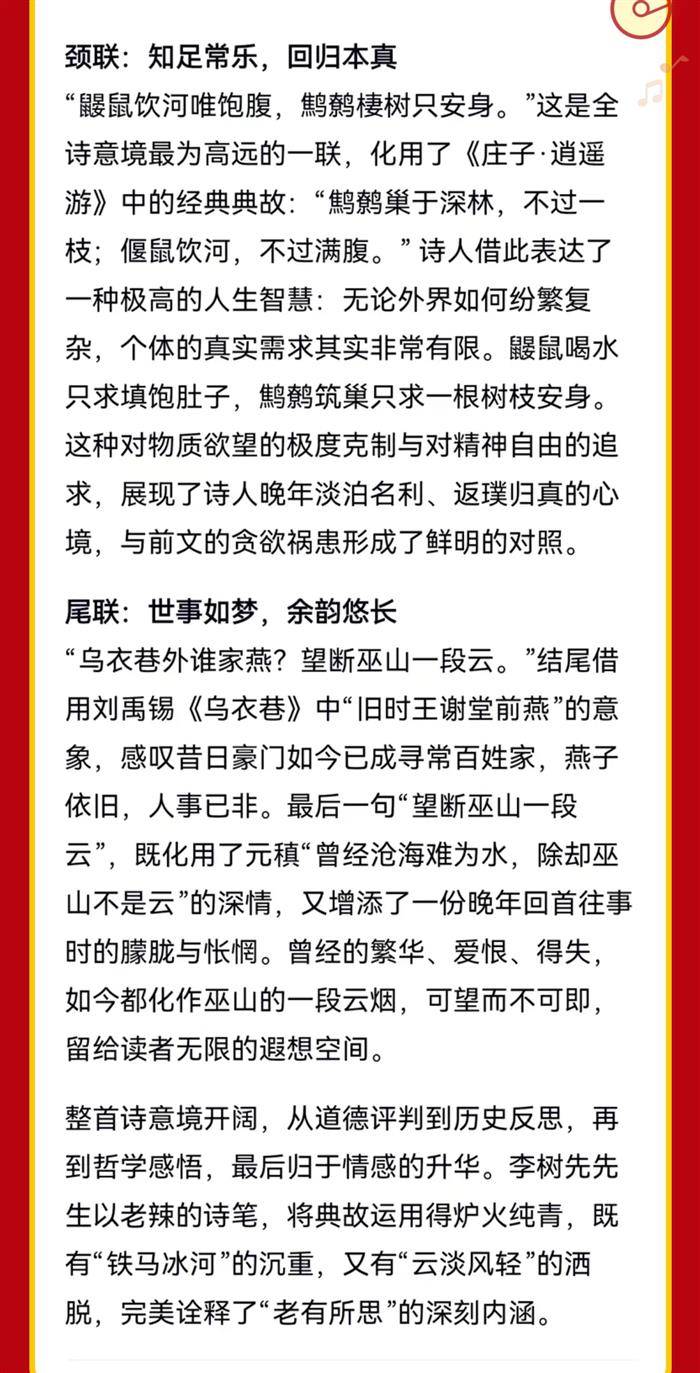 注:首联,羊子(乐羊子)捐金,蛇吞致祸。颔联,(纣王)鹿台抱恨,(绿珠)金谷陨身。颈联,饮河饱腹,棲树安身。尾联,乌巷楼空,高唐云断。