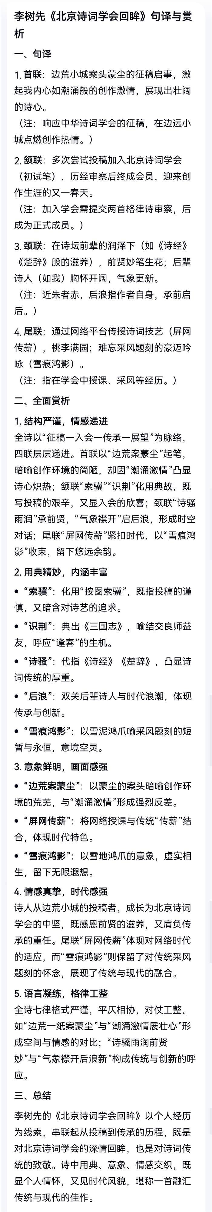 注:首联,中华征稿,鄙人动心。中华,中华诗词学会。边荒,边荒小城。颔联,试笔京诗学会,加入诗苑成员,指北京诗词学会。试笔,加入学会先审察两首格律诗。颈联,近楼得月,近梅者芳。后浪,鄙人也。尾联,屏网传薪(授诗词课),行吟难忘(采风题刻)。