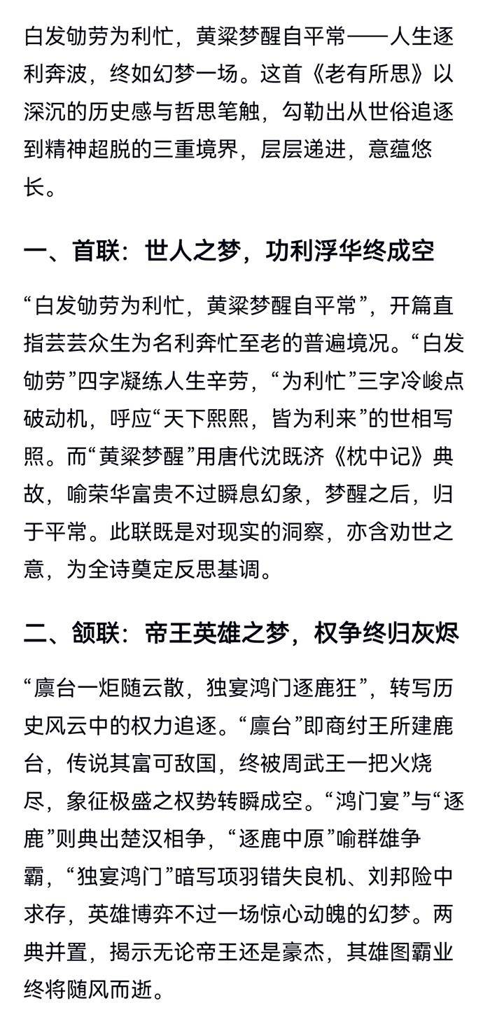 注:首联,世人学子之梦。引"天下熙熙,皆为利来”句意,又引黄粱梦之典。颔联,帝王(纣王)英雄(刘项)之梦。廪台,即鹿台。颈联,高人雅士之梦。尾联,神州壮美,遐思千载。