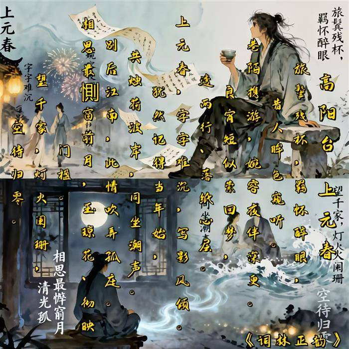 注:上阙首句二联宜用对仗句式,下阕第二句宜用领格句式。