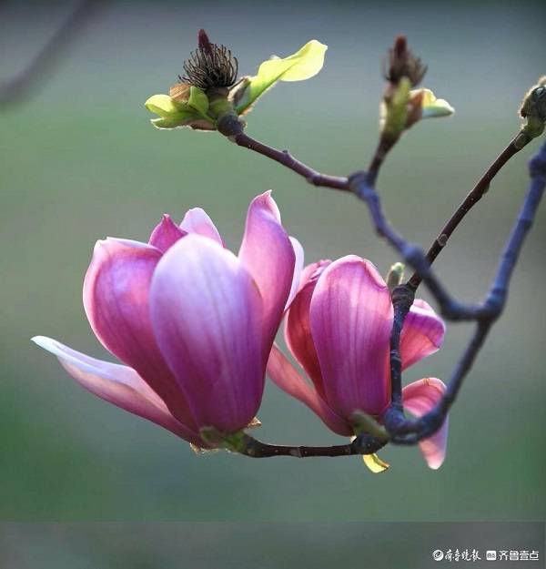 紫玉兰,白玉兰,惊艳花开二月天,迎春她抢先。