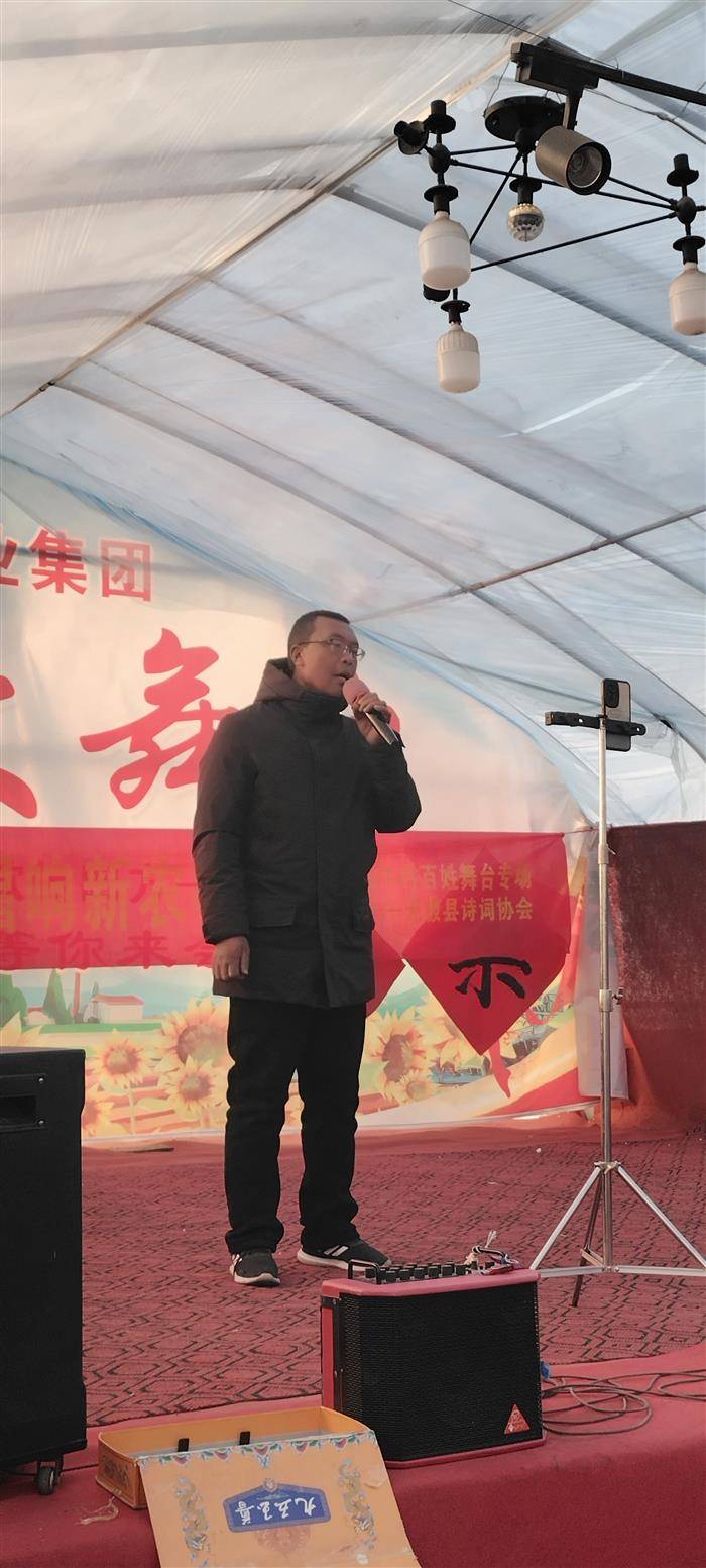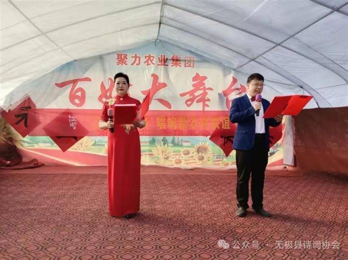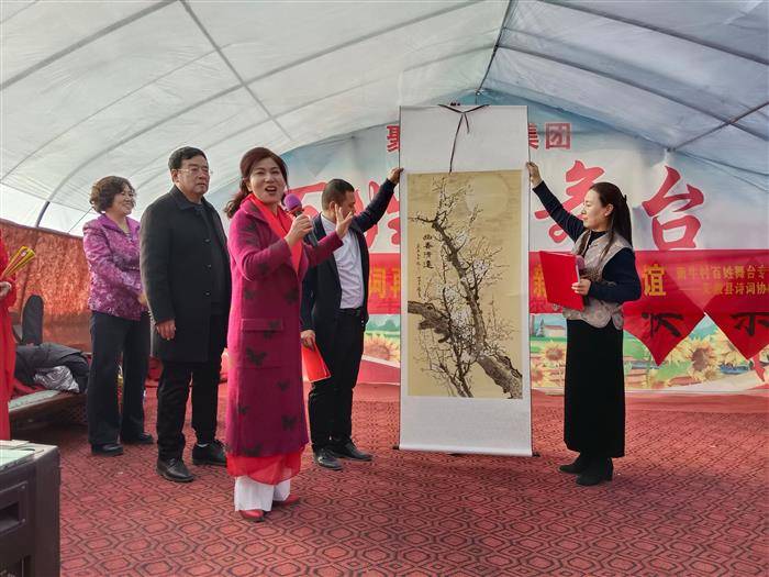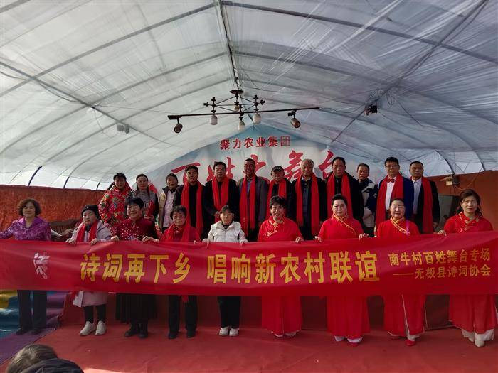 2026年1月10日下午,无极县诗词协会在文联领导贾立青和诗词协会会长梁民亮的带领下,一行20余人到南牛村开展了“诗词再下乡 唱响新农村”联谊专题活动,本次活动由我协会会员牛红强老师特别邀请并提供活动平台,与南牛村民共同举办,其中我协会共出演了18个节目,朗诵、快板、歌曲、舞蹈等多种形式相结合,交互进行,演员们精神饱满,节目精彩纷呈,场面热烈,迎得了观众的阵阵掌声。牛红强老师自筹资金搭建群众大舞台的善举,也得到了诗词协会和父老乡亲们的高度称赞,协会会员们也根据牛红强老师的模范事迹和南牛村种植鲜蘑这一农业特色为题材创作了多篇优秀诗词,活动开始还为牛红强老师敬献了“德润桑梓”墨宝和“幽香清远”白梅画,得到乡亲们的一致好评!这次活动是我协会“诗词进乡村”的又一次尝试,对农村文化建设起到了重要的推动作用!