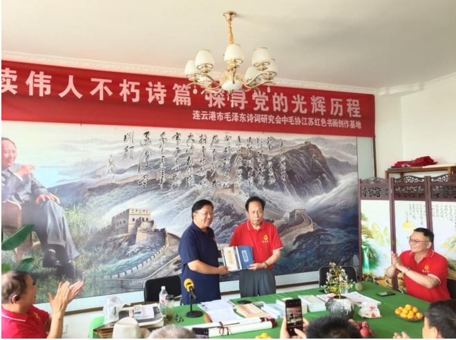 抵达后,诗社举行了庄重的赠礼仪式。社员胡道君手沐的毛主席画像、黄梁兴作诗且刘