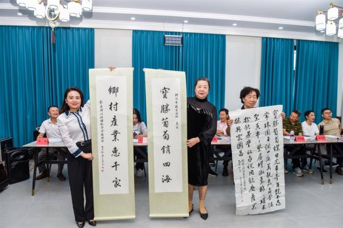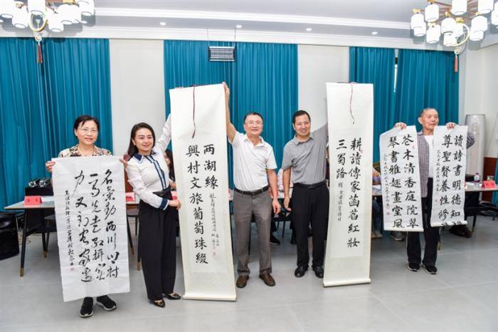会上,诗友们纷纷向宝胜村赠送了诗词、楹联等书法作品。