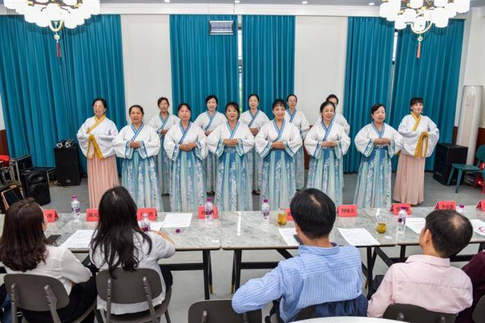 在诗词及歌舞展演中,区诗词楹联学会吟诵队吟诵古诗文《爱莲说》《定风波》《春宵》,何金梅独唱歌曲《美丽的家园》,区都市管弦乐协会民乐合奏《八月桂花遍地开》,宝胜村龙舞艺术团表演舞蹈《客家染》,余彩、邓瑞祥表演诗朗诵《为龙泉驿歌唱》。精彩的诗词吟诵和朗诵,深情的歌曲独唱,喜庆欢乐的民乐合奏,客家韵味的舞蹈,赢得了诗人们阵阵热烈的掌声。