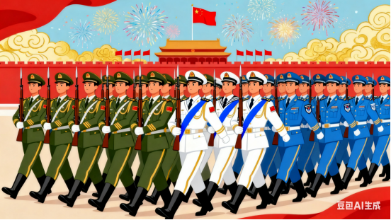 正步铿锵踢耻辱,三军铁壁卫国安。