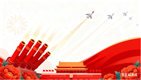 礼炮轰鸣,震寰宇、中华焕彩。瞻盛典、雄师列阵,壮怀澎湃。铁甲驰驱威四海,银鹰呼啸穿苍霭。忆往昔、烽火漫神州,人何怠。