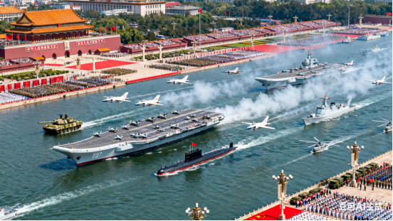 鲜花礼炮动京城,沙场三军秋点兵。