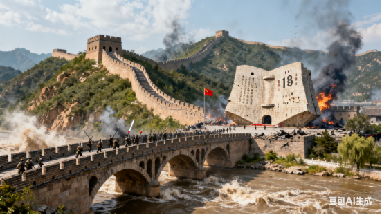 铁甲洪流行大道,银鹰战舰驱贼。觊觎空海野心没,东方升皎月,禹甸报春雷。