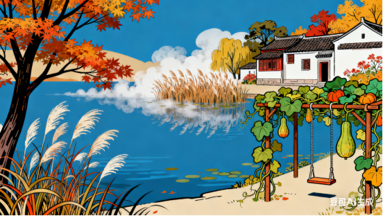 几树江枫欲醉,半湖蒲苇扬花。一湾薄雾掩轻纱,十里新秋入画。