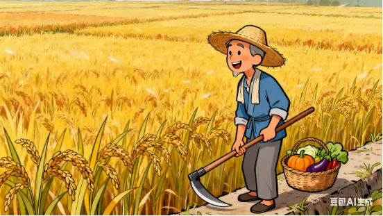 农夫期盼丰收景,偏爱田间那垄黄。