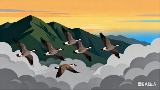 万里高天雁语长,集群列队向潇湘。穿云破雾声嘹亮,越岭翻山暮色凉。