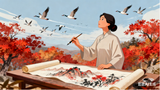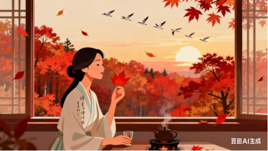 漫数时光枫又红,层林尽染雁排空。乡思点点迎朝雨,秋意绵绵向晚晴。